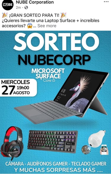 3) Sube el post del sorteo a tus historias de instagram o facebook y envia una captura a NUBE